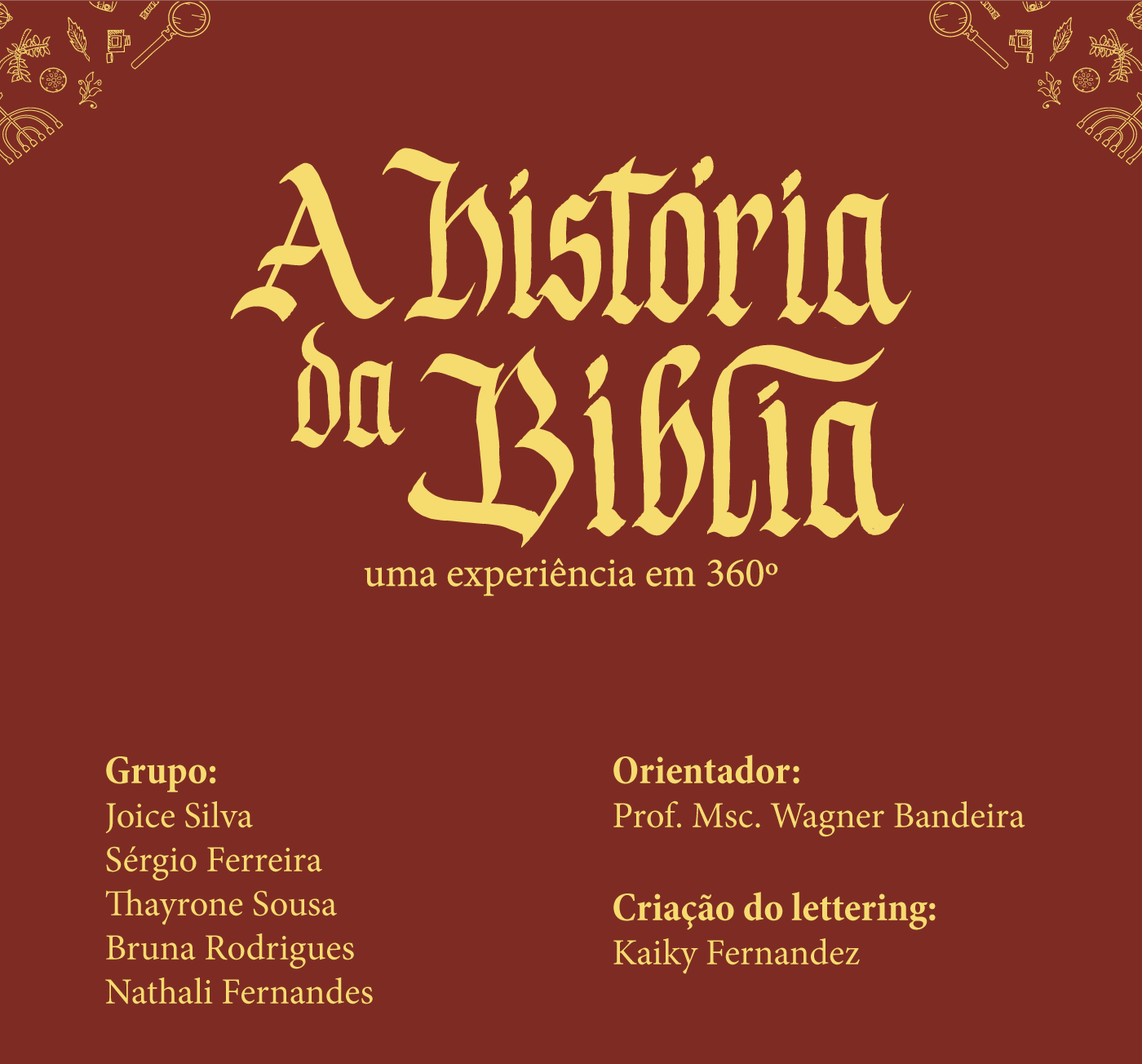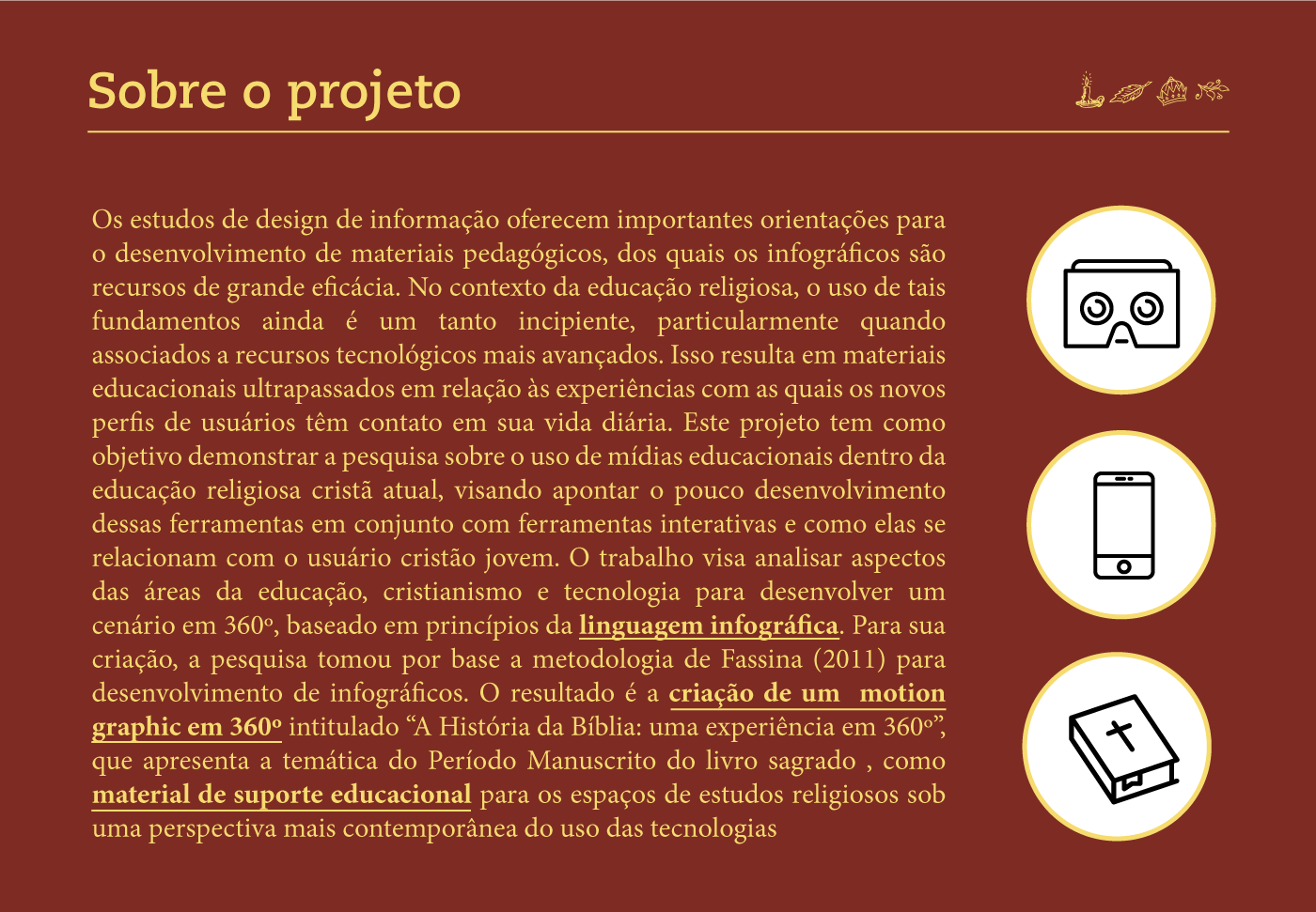 Trabalho de conclusão de curso de Design Gráfico da Faculdade de Artes Visuais da UFG. O objetivo final do trabalho era o desenvolvimento de um motion graphics 360º sobre a história da Bíblia.